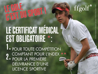 - adresser l’attestation à la FFGolf (68, rue Anatole France – 92309 Levallois-Perret ).